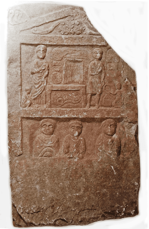 Il est aujourd’hui avéré que l’expertise médicale des femmes ne s’arrêtait pas à leur propre corps : des inscriptions grecques, des papyrii ou de brèves mentions textuelles montrent que des femmes exerçaient une activité thérapeutique qui n’était pas seulement destinée à d’autres femmes – loin de l’alternative entre la sage-femme et l’experte en drogues dont on peine à se débarrasser. Une stèle macédonienne sans inscription (ill. 2) montre par exemple que certaines femmes ont peut-être exercé dans de véritables cabinets : la femme est à gauche, identifiée par Constantinos Moschakis à une praticienne dont l’activité serait définie par les objets qui l’entourent.